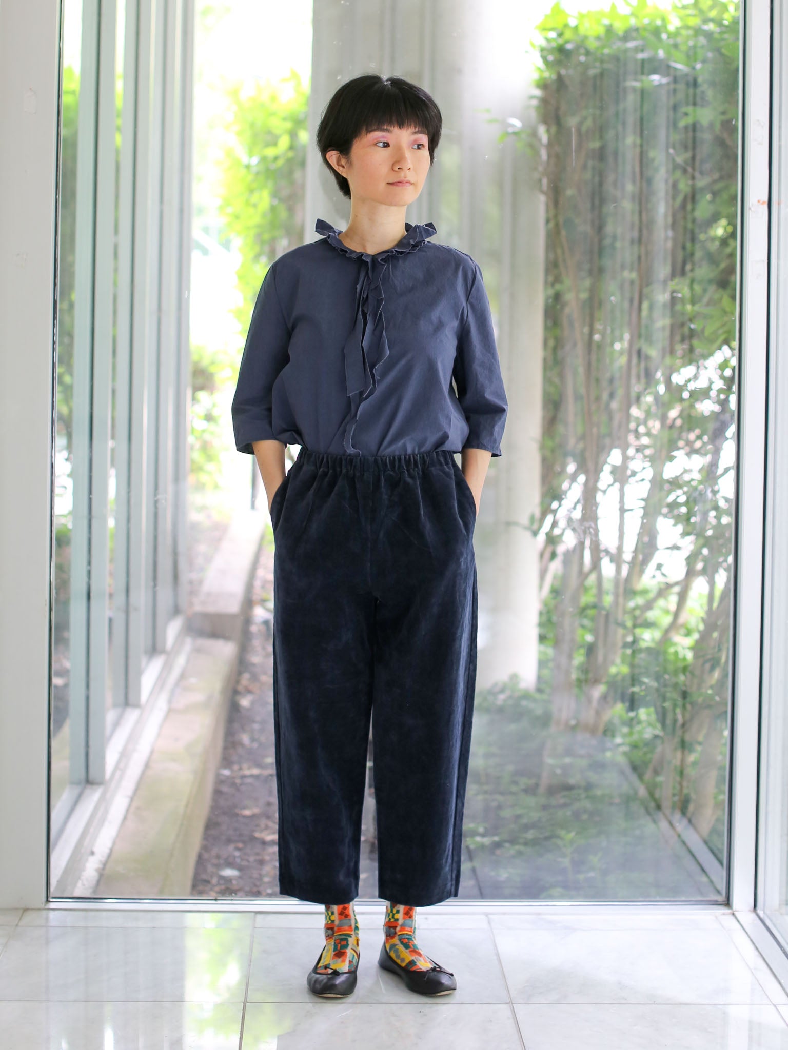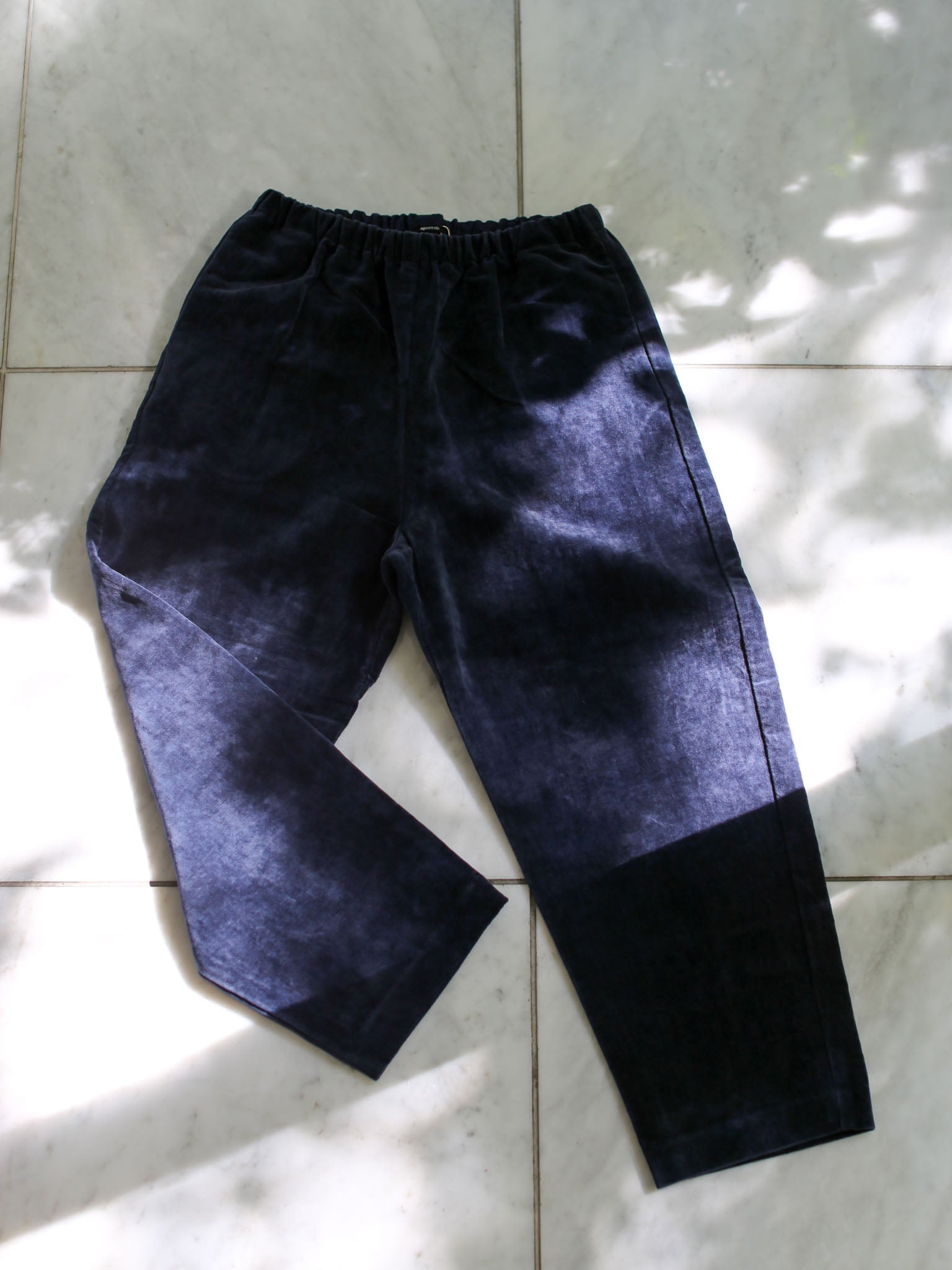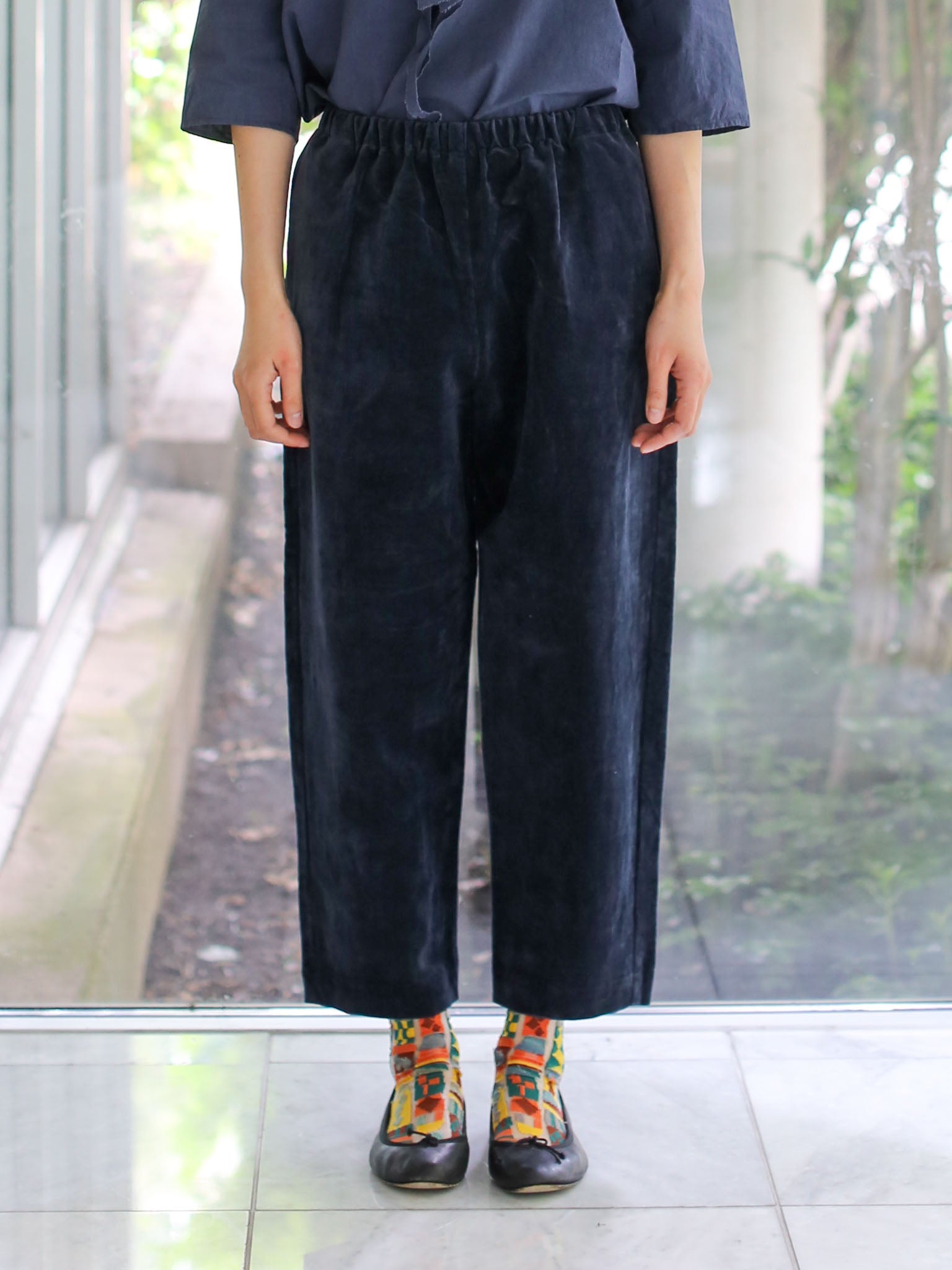 Apuntob Cotton Linen Velvet Tapered Pants - Navy Blue