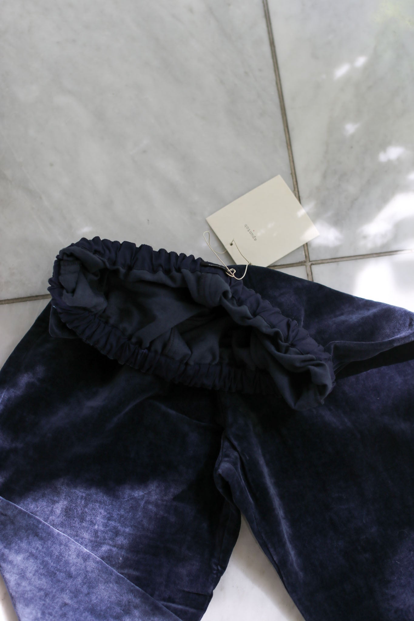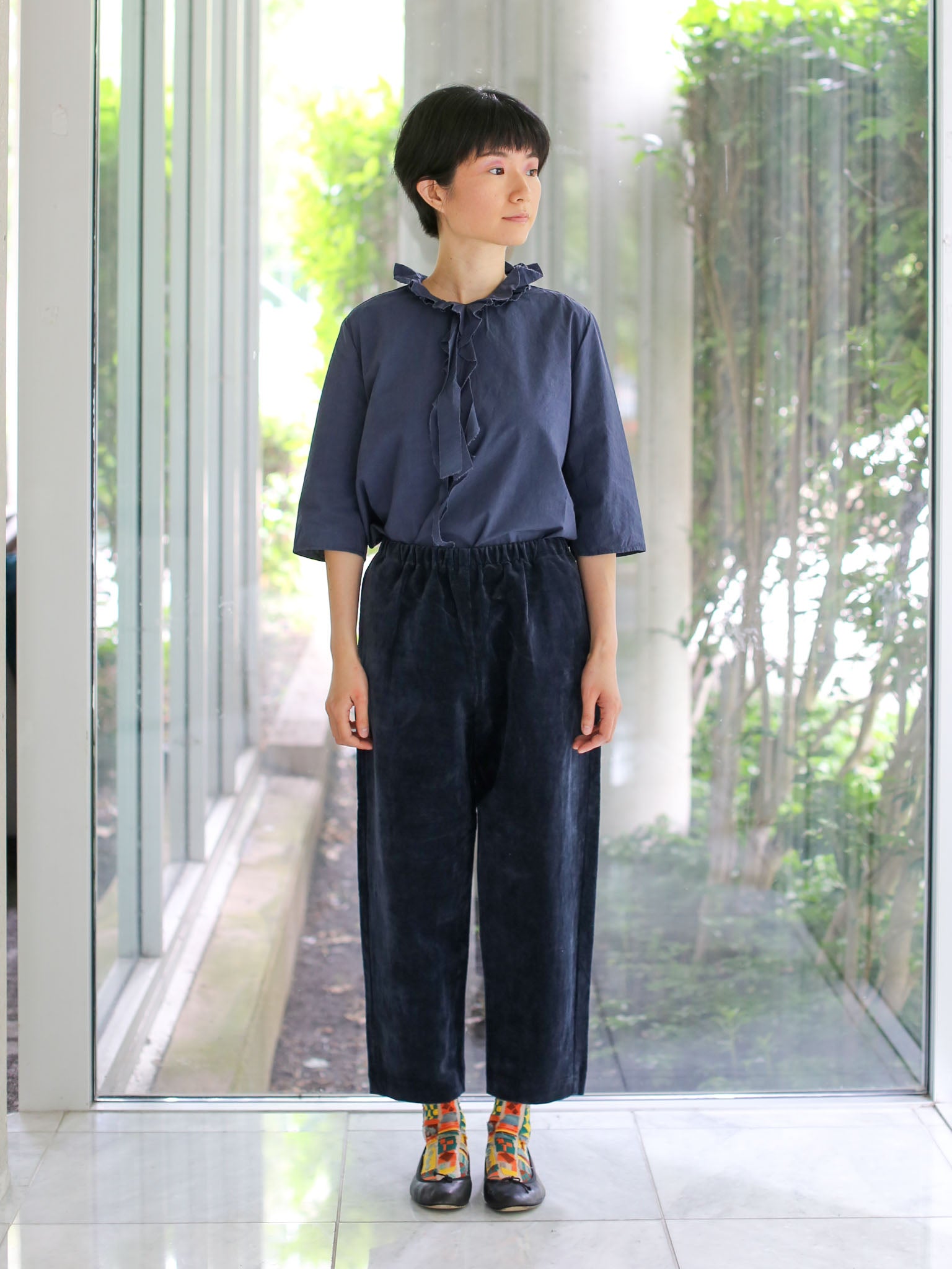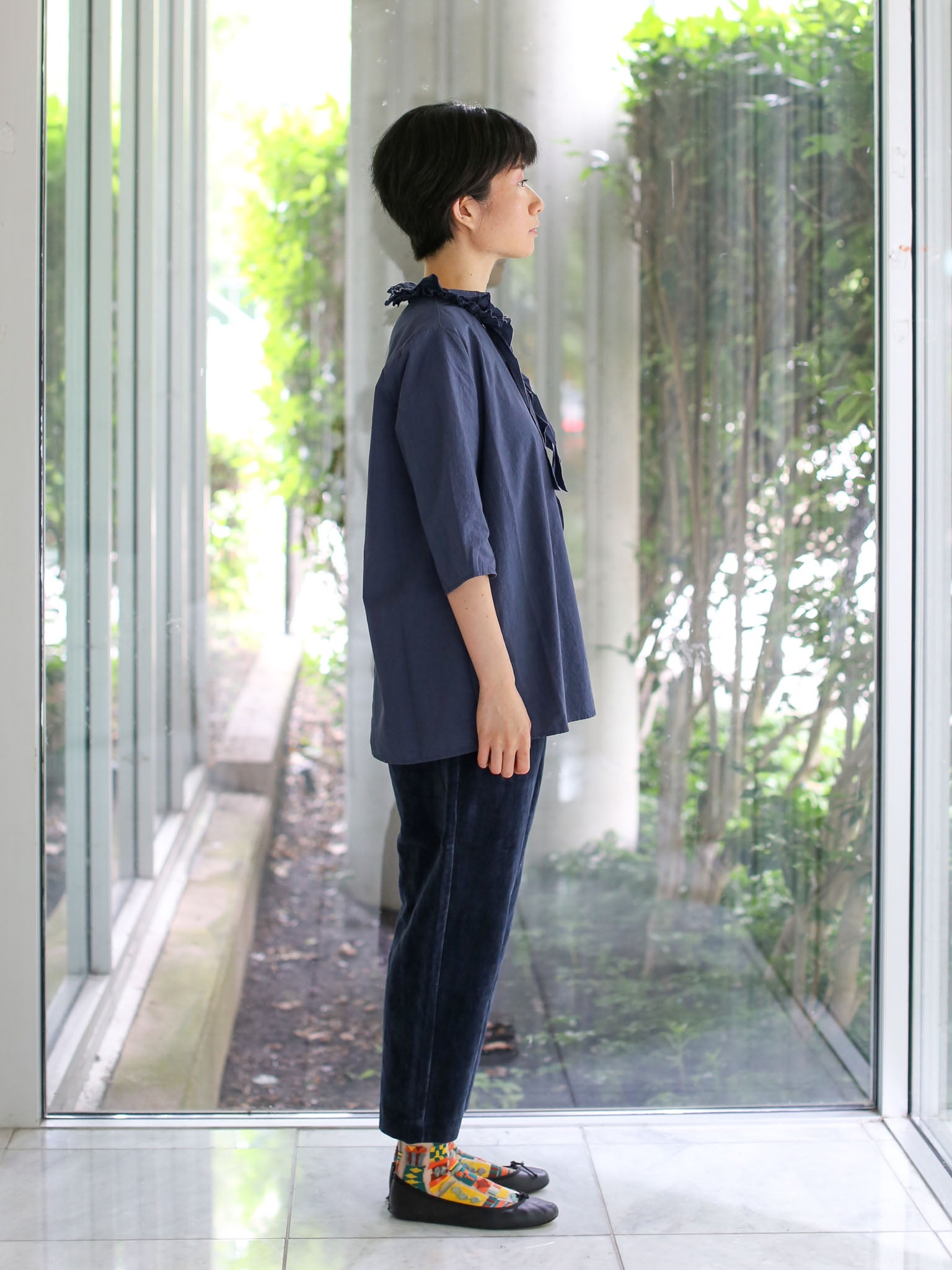 Apuntob Cotton Linen Velvet Tapered Pants - Navy Blue