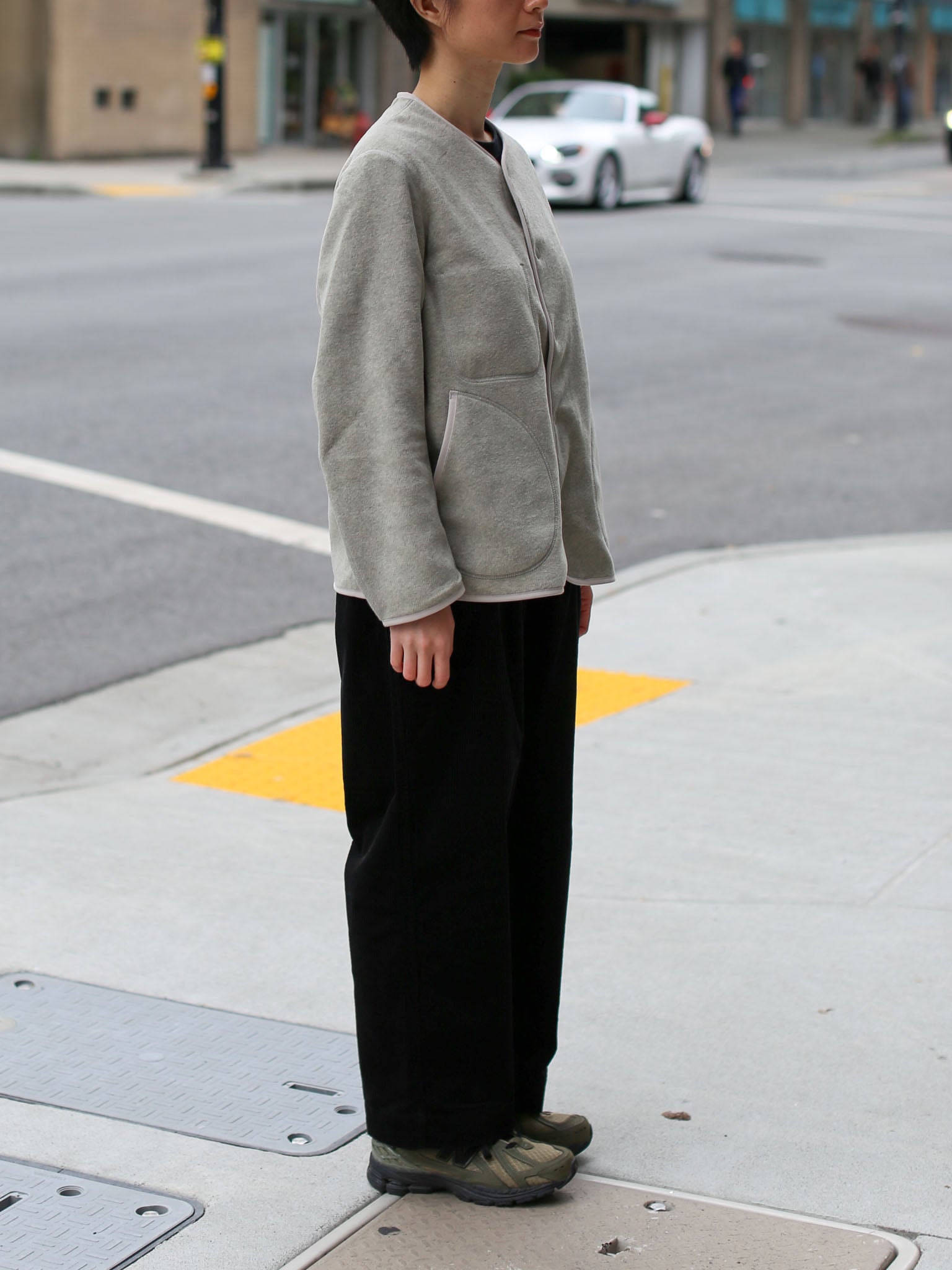 These easy pants feature two pleats and a straight cut for a comfortable, relaxed fit that hits at the perfect cropped length. Crafted from lightweight, soft corduroy, they offer a roomy silhouette with an adjustable drawcord waist and elastic band for added ease. Practical details include seam pockets on both sides and a hip pocket, along with a discreet logo pin on the hip for subtle branding.