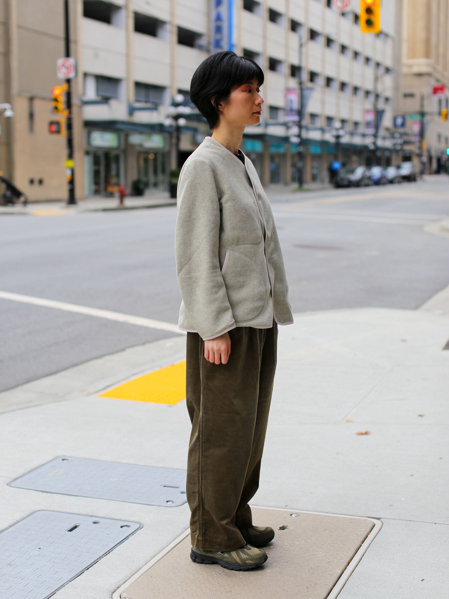 These easy pants feature two pleats and a straight cut for a comfortable, relaxed fit that hits at the perfect cropped length. Crafted from lightweight, soft corduroy, they offer a roomy silhouette with an adjustable drawcord waist and elastic band for added ease. Practical details include seam pockets on both sides and a hip pocket, along with a discreet logo pin on the hip for subtle branding.