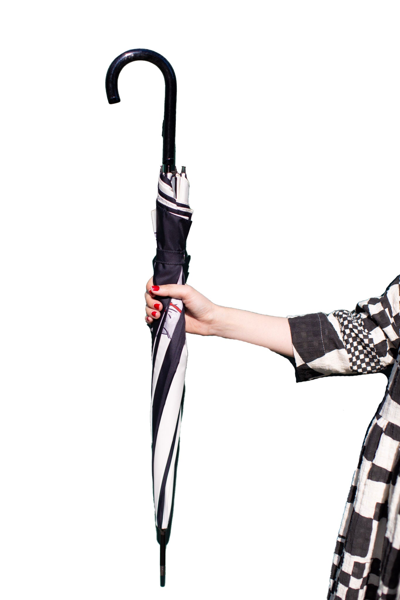 This long umbrella has an automatic opening. The handle is made of resin.