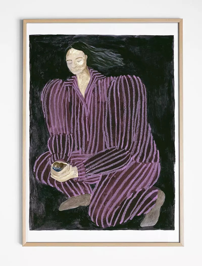 In her work Sofia Lind plays with muted colors and lively patterns in a way that’s fresh and highly expressive, to create delightful pieces of art that catches the attention of the viewers. In her work she often depicts how women interact with parts of life, such as language or nature, and makes birds and flowers come alive as charming characters.