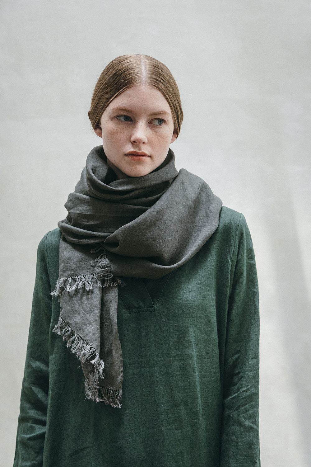 The Roserie scarf is season-less and only becomes softer with each wash and wear. A light-weight linen with selvedge fringe along the ends.