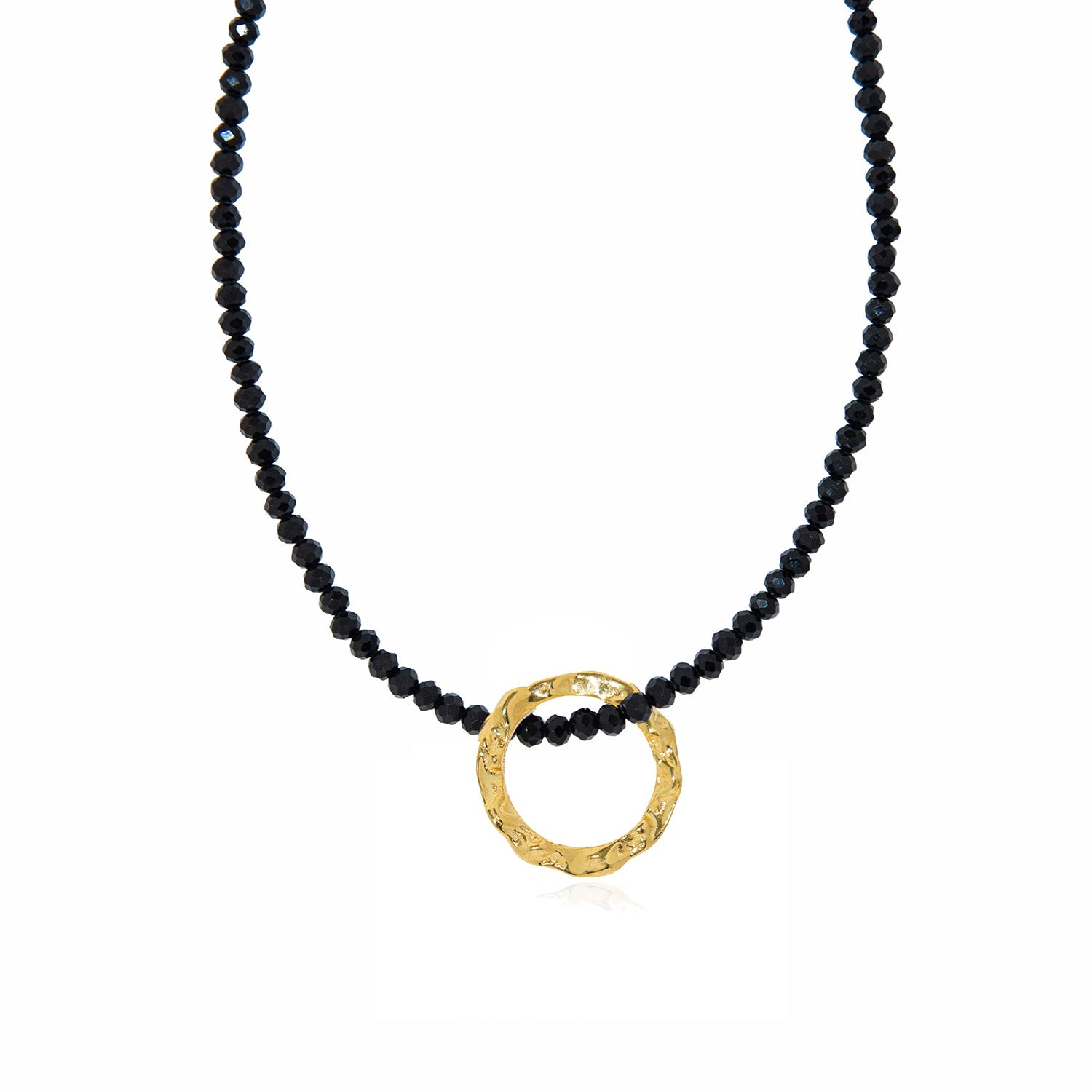 Strung with shiny black crystal stones, this necklace exudes pure elegance.
