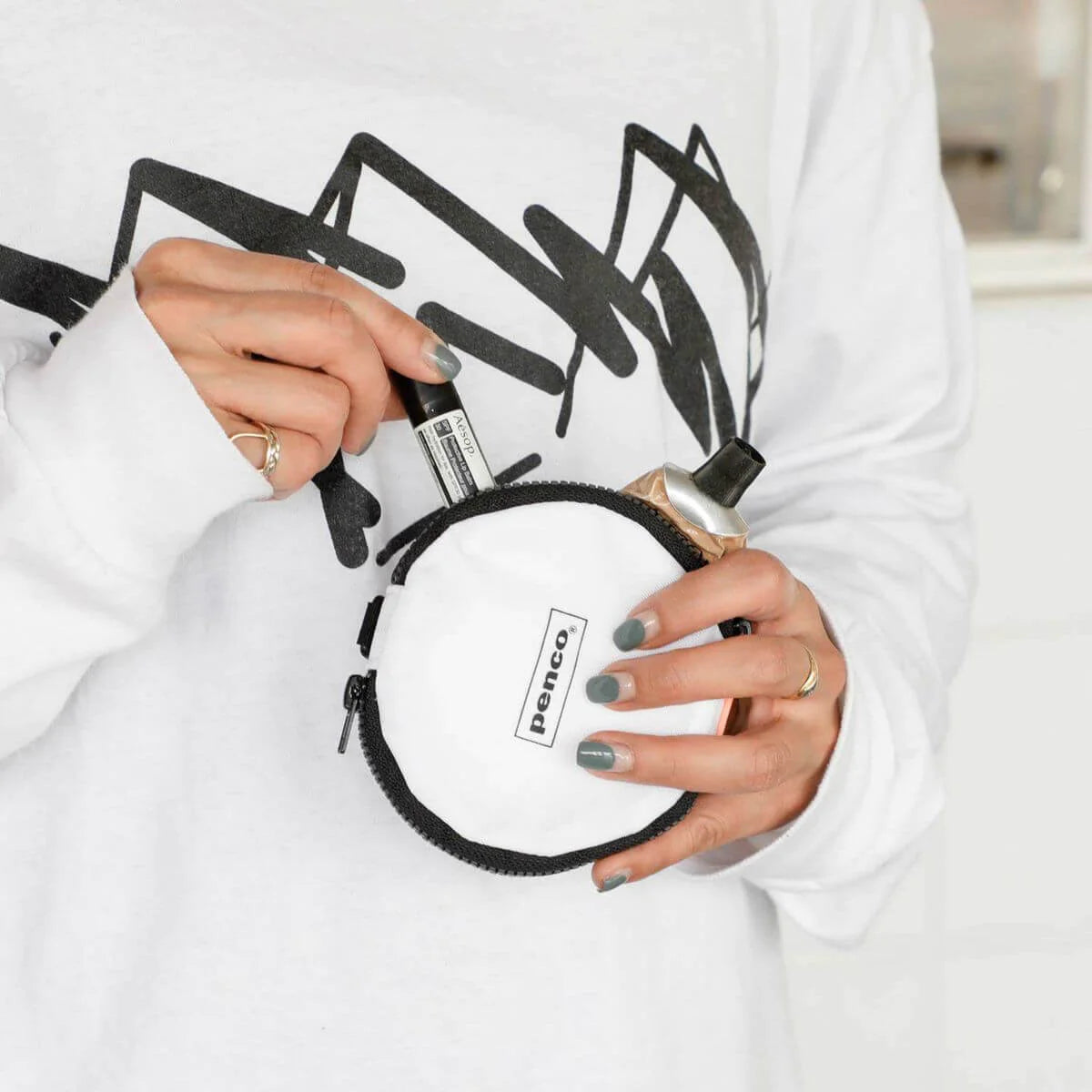 The soft nylon case comes with a D-ring, and can be turned into a carry purse with a strap (strap is not included in this purse). The two separate pockets allow you to store coins, cards, and small items such as keys, pens and memo pads.