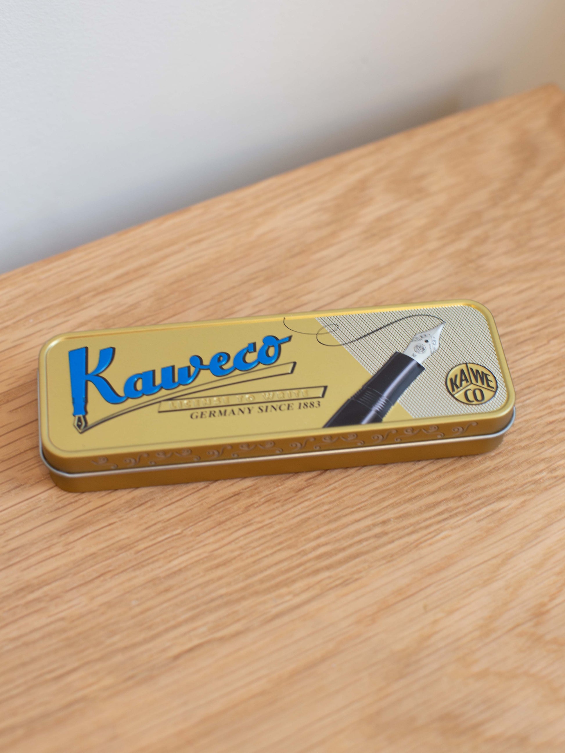The Kaweco Tin Box - Large/Gold can fit two Kaweco Perkeo Fountain Pens.
