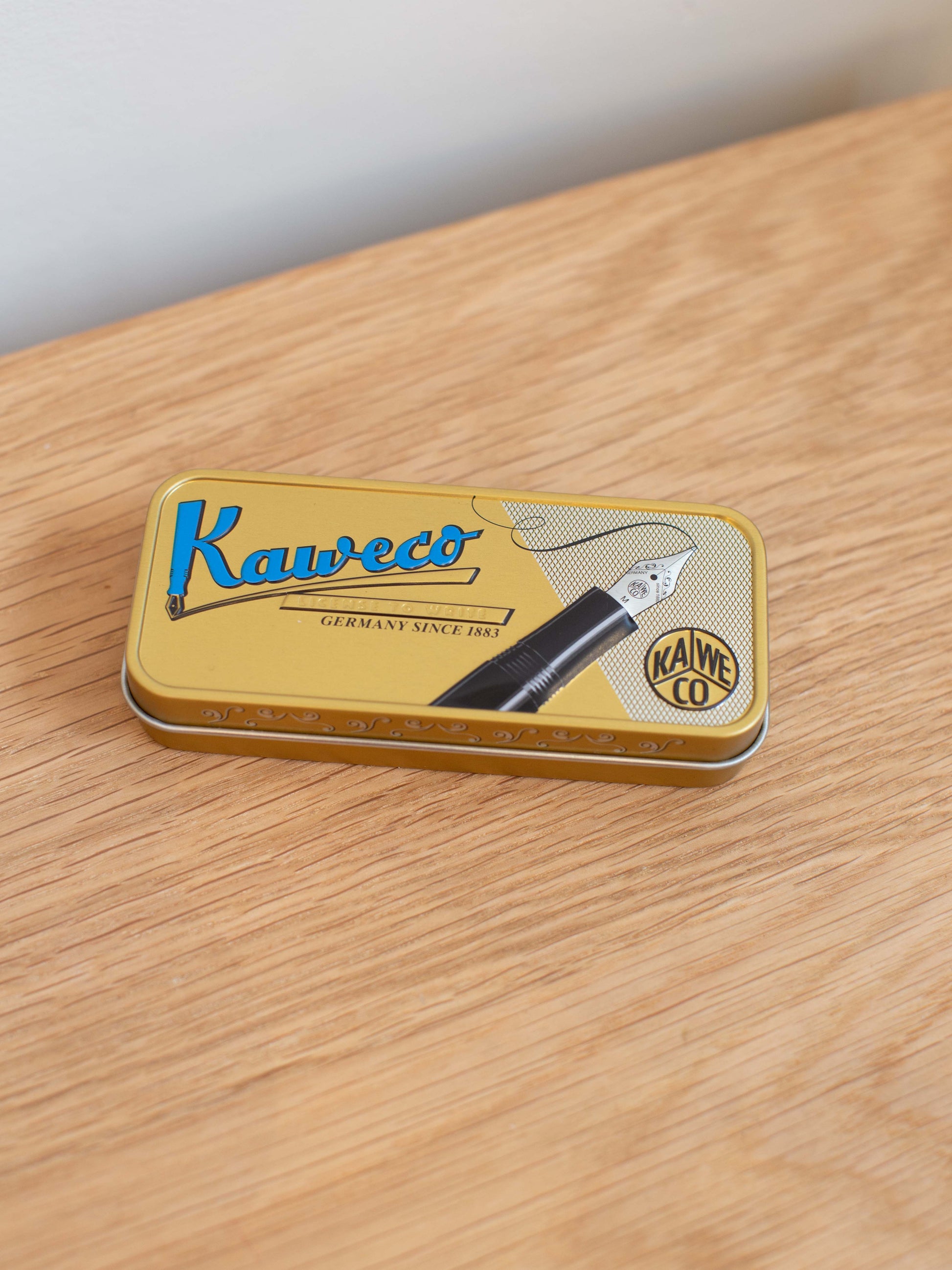 The Kaweco Tin Box - Small/Gold can fit both Kaweco classic fountain pen and ballpen.