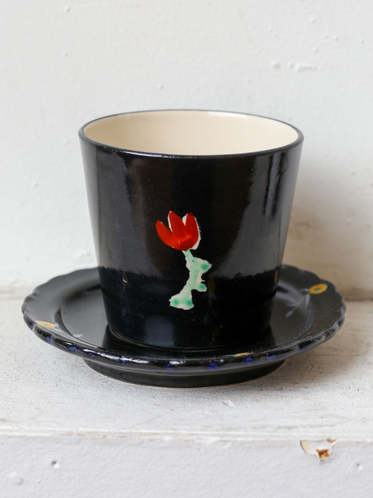 Kuroji Iroe Cup & Saucer by Misao Yajima