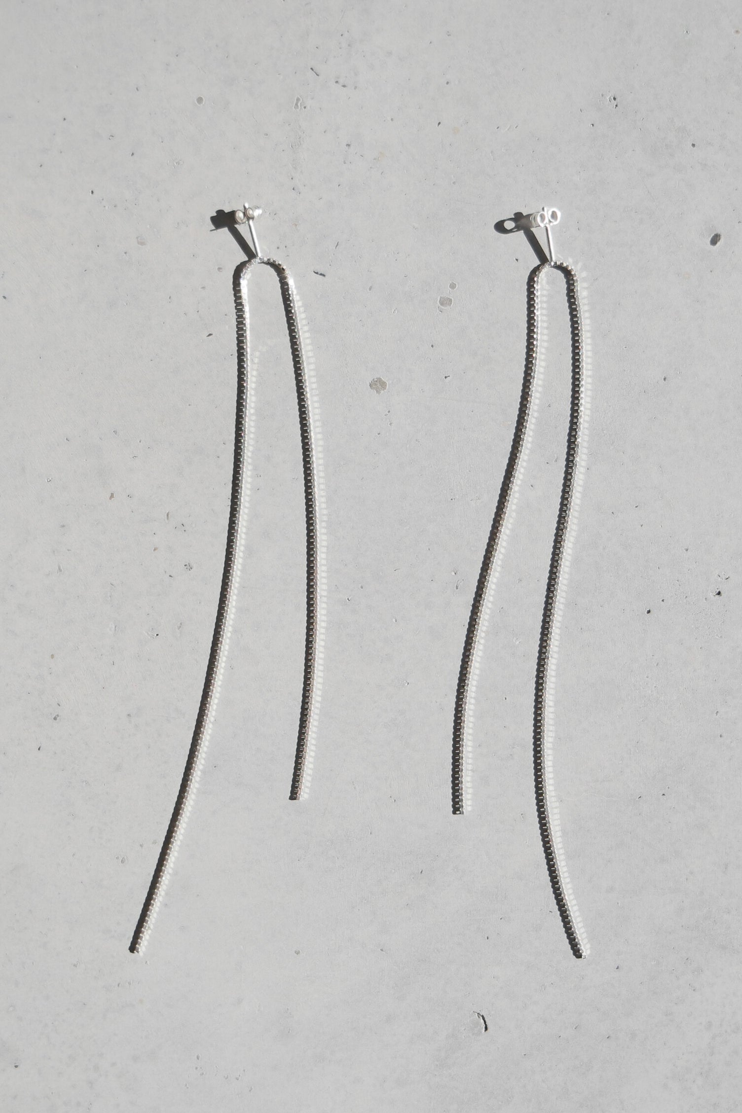 A pair of sparkling, dangling long earrings. Lightweight, so great for all day as well as for going out. Available in shiny Sterling silver and gold-plated.