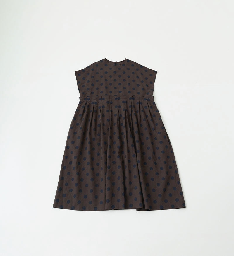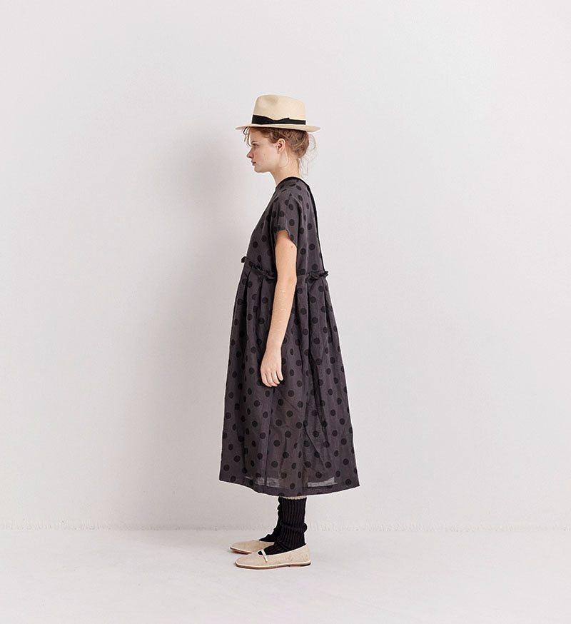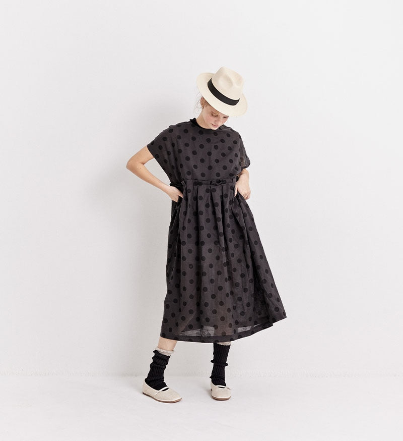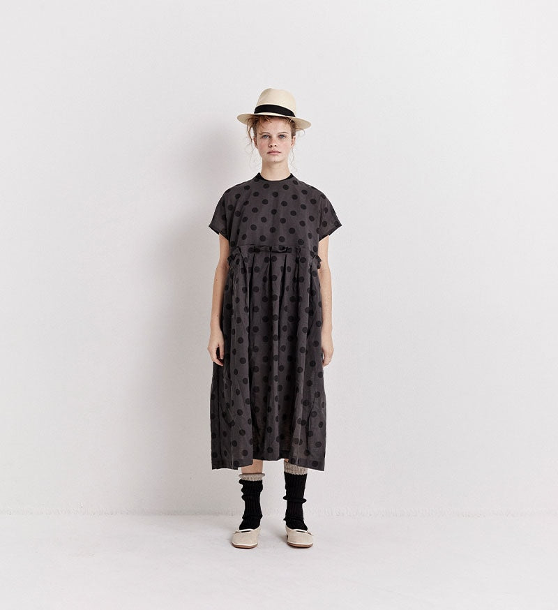 [30% off] Veritecoeur Tuck Dress - Sumi Gray x Black Dots