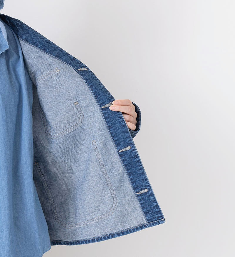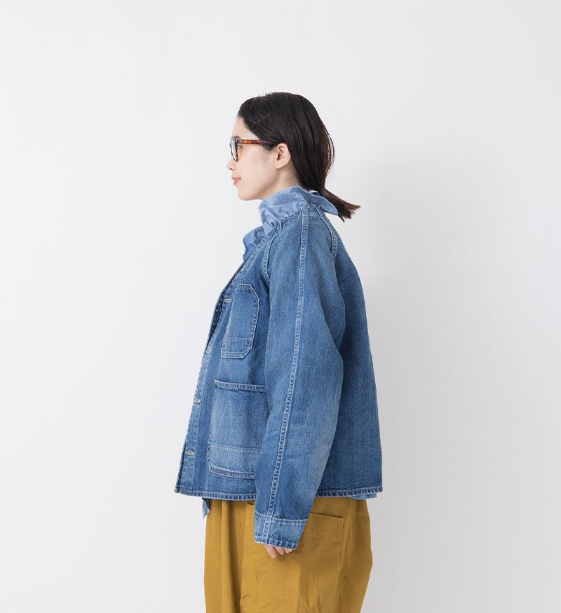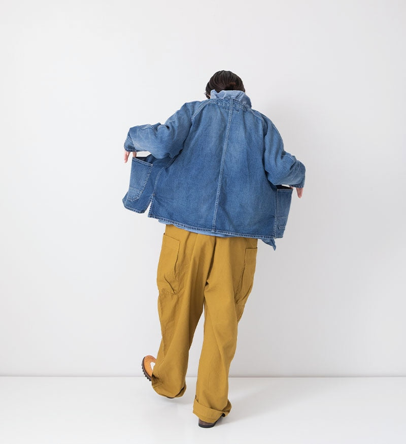 This jacket is made of 12 oz denim fabric. The processing makes it soft and comfortable against the skin from the beginning.